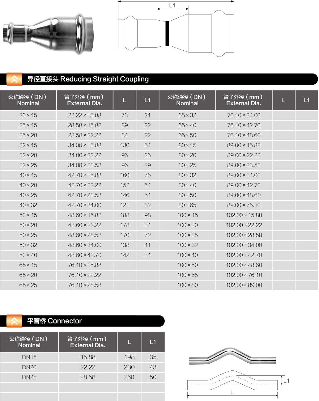 双卡压式、沟槽式、承插焊式不锈钢水管配件: